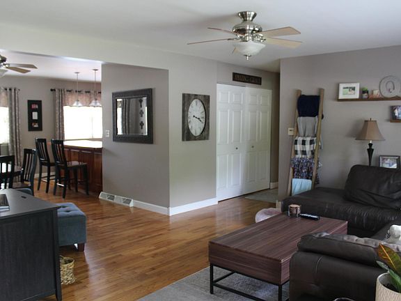 For Rent! Move-in ready house in the Mahomet-Seymour School District. 1800 sq ft, three-bedroom, two-bath ranch with a partially finished basement. Open concept family room, dining room, and kitchen with a breakfast bar. The kitchen includes custom cherry cabinets and GE appliances. Hardwood and tile floors throughout the main level. High-efficiency furnace and A/C. Spacious storage in the basement laundry/utility room with washer and dryer included. Within walking distance of three Mahomet-Seymour schools, 13 Acre Park, and downtown Mahomet. Large fenced backyard includes a brick patio and a large composite deck, with a 21ft above ground pool. The pool will be maintained each season by the landlord for carefree swimming and outdoor fun. This home offers plenty of storage with a one car attached garage and an additional two car detached garage. Tenant will have use of half of the 2 car detached garage and the driveway in front of it. The Landlord reserves the other half of the 2 car detached garage and driveway in front of it for personal use. Furnishings pictured are not included in the rental. * Small dog allowed, no cats. * No smoking in the house. * Tenant is responsible for all utilities, mowing, leaf and snow removal. * Garbage pickup is required. * Landlord will open, maintain, and close the pool each season. * Credit and background check required.