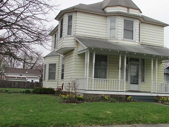 This unique older home is a one of a kind charmer! If you love the beautiful wood character of older homes be prepared to fall in love! You will find the details of yesteryear throughout. The large inviting front porch is a great place to sit a spell. The stain glass and ceramic entry welcomes all. The focal point of the living room is the beautiful fireplace (nonfunctioning) with its mirrored mantel and ceramic surround. Open stairway. Hardwood floors thru out the main level were once gym flooring. The home was made to entertain. The butlers doors and pocket door add to this homes character. The authentic white tin ceiling in the kitchen was relocated to this home. There are bump out bays in the dining room, kitchen and master bedroom. Master bedroom is upstairs and has a private sitting room. There are two other bedrooms up. The full bath upstairs features a clawfoot tub and shower. Full bath down too. Gas forced air heat. Partial basement. Partial fenced in yard. Beautiful! One of a kind! Don't miss out!