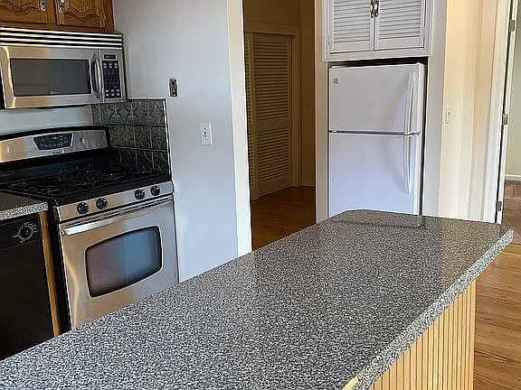 Beautiful 1 bed/1 bath located on the second floor. 1 assigned free parking spot. Ample additional free parking on site. Assigned storage area included in basement. HOA fee: $163. Pet friendly HOA. Upgrades: Hardwood floors. Bathroom: Fully renovated -walls, tile, bath, toilet. All original windows replaced with thermopane windows. Kitchen cabinets resurfaced with new knobs and hinges. New countertop in kitchen with matching breakfast bar . Stainless steel stove and microwave - Black dishwasher. All doors replaced with raised panel doors with nickel hinges & handles. Crown molding in living room. High hat lighting throughout. Newer fridge and washer/dryer. The Condo is within walking distance of multiple restaurant, a bar, and stores. All Inquiries must be made via text or through Zillow. Buyer agent commission must be covered by buyer.