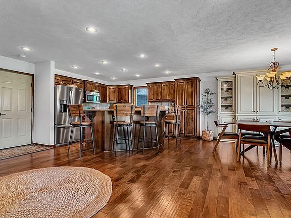 Beautiful all brick home on a golf course lot situated at the end of a quiet culdesac. Quality built home with a new roof in 2020. Stunning hardwood floors and new carpet throughout. Fabulous kitchen with tons of cabinets, huge island, and large dining area. A two sided fireplace separates the kitchen and living room. The master suite, laundry, and two bedrooms are upstairs. An additional two bedrooms are downstairs. The second living area downstairs has a walk-out to the golf course. Enjoy the lovely covered and shaded back patio. Other amenities include a water softener, in ground sprinkler system, high speed internet and gorgeous views of the golf course! 2022-08-16