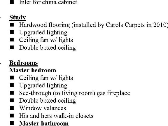 - Jetted Tub, Breakfast Bar, Double Vanity, Security System, Walk-In Closet(s), High Ceilings, Cable, Roof Turbines, Dryer Connection, Separate Shower, Ceiling(s) Trey, Workshop, High Speed Internet, Cable TV Access Available, Smoke/Fire Alarm, Washer Connection, Blinds/Mini Blinds, Programmable Thermostat, LinenCloset/ClothesHamper, Pull Down Stairs to Attic, Window Treatments All Remain, Double Oven
