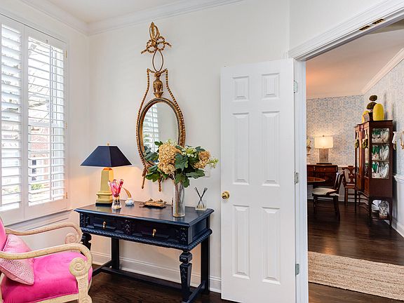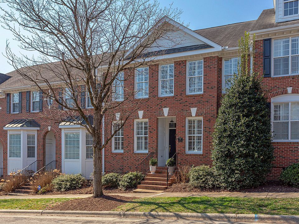 Notable on Nolen. The vibe is easy elegance aglow with natural light. Fine details include: espresso hardwoods throughout the main level, including the owner's suite; a serenely chic palette with a pop of Carolina blue wallpaper in the dining room; a waltz of white cabinetry, built-ins, and balustrade; bespoke moulding; sisal-like carpeting; louvered shutters; and tile bathrooms. FAB main-level flex room with double doors. The kitchen, breakfast and family rooms are an open, expansive lounging haven. Feast for the eyes kitchen and breakfast with solid surface counters, stainless appliances, walk-in pantry, bar counter, stylish cage lantern pendant lighting; and household command-center. The limestone-surround, custom-mantled gas fireplace, built-in cabinetry, soaring ceiling, and two-story wall of windows overlooking the private patio make the family room a choice spot to gather and unwind. Spacious and well-laid-out bedrooms. Carefully curated updates and beautifully maintained. Bloom in the private fenced courtyard complete with enchanting string lights. It truly takes a village, and 105 is supremely situated within a few minutes to fields, swim, tennis, schools, parks, and Market Street movies, munchies and more. Begin your own tradition in this Village classic. Life is nifty on Nolen.