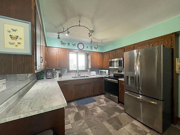 What a find! Whether you are starting out or slowing down. Well-kept 2 bedroom, 1 bath home on a huge lot. Efficient kitchen with stainless steel appliances and newer countertops. Sunken family room with built-ins. Recently updated 3/4 bath. Enjoy the backyard views from attached 3-season room or kick back on the composite/maintenance free deck. Attached 1-stall insulated garage along with an additional24x30 insulated and heated detached garage/shop. All sitting on large well landscaped lot with plenty of space for gardening or activities. Definitely a must see!