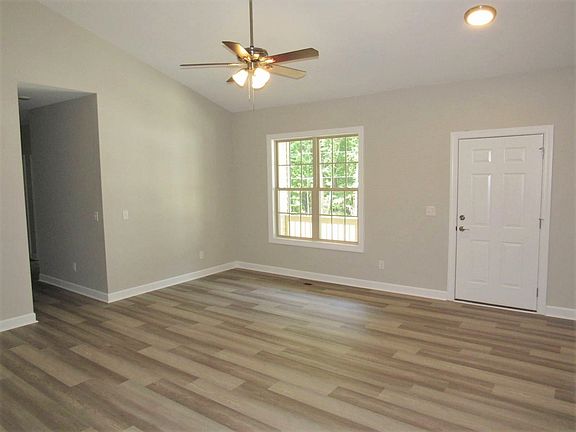 Great 1500+ sqft custom build ranch plan with a 2 car front entry garage. Covered front porch. Cathedral ceiling through the living room & kitchen/dining area. Separate laundry room with a utility sink off the garage entrance. Granite kitchen c/tops, recessed lights, pantry closet, & open dining area. Spacious master suite has an AWESOME 10' walk-in closet with custom wood shelving & a private bath with a double vanity, tub/shower combo, & built-in shelving. Walk-in closet off the hallway for additional storage. Covered front & rear porch, wooded backyard. Vinyl siding. Heat pump. Gorgeous finish & MOVE-IN READY!