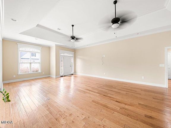 - View to Family Room, Solid Surface Counters, Walk-In Closet(s), Pantry, Double Vanity, Coffered Ceiling(s)