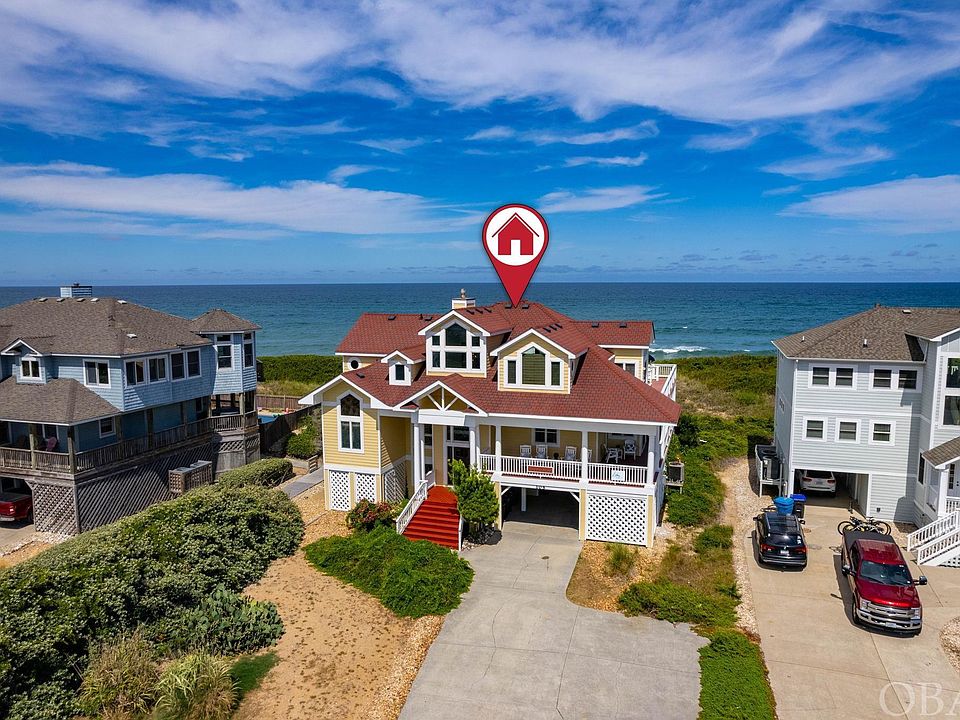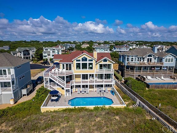 This quintessential Ocean Front home stands above the crowd in every…single… aspect. Tastefully remodeled by award winning builder Sam Moore at Soundside construction to include a fantastic face lift making the effective age much newer. The impeccable re-design was crafted by a West Coast Architectural design team specializing in re-creating high end vacation homes and included siding, some windows and doors, new living room layout, re-designed bathrooms, new pavers and pool resurface along with all lighting and furnishings being replaced. A unique blend of contemporary, metropolitan and beach house Styles offer a flair your clients will love. A Grand entry leads you into a pattern of gorgeous wainscoting along the stairwells crafted of board and batten floor to ceiling intricate trim-work leading into Bay Windows, Alcoves and an abundance of glass with Natural light spreading into the rest of the home’s sweet features. The first floor offers a dry entry, an elegant game room, Utility room with two sets of Washers and Dryers and a Bunk Bedroom along with a full hall bath. Mid-Level offers a stand-alone open style Office and 4 bedrooms, one of which is a King Master. All these thoughtfully created bedrooms have direct bathroom access, solid wood doors and ample closet space with direct deck access to each room overlooking the Atlantic Ocean. Heading up the open white picket stairwell you are greeted with tremendous natural lighting, floor to ceiling columns, vaulted ceilings, Atlas light fixtures and a floor plan that invites you in warmly while your mind tells you have made it to your own slice of Outer Banks paradise. The top level is wide open but designed with each space to have its own feel. The newly designed Living Room is impeccable and has plate glass windows overlooking a view you won’t soon forget. Dining here is comfortable with Ocean views and a classy wicker and solid glass table set for 10. The breakfast nook faces south in its own Alcove and the Kitchen offers an abundance of storage space and Bar seats along with a wet bar and ice maker for the evening’s festivities. Top level also features a full hall bath with a Modern walk-in rain shower. Finishing off the third level is the second King En-Suite bedroom. It offers big spaces and your own private balcony facing the Ocean. With East, South and West facing decks, large pool with new paver deck and a community that also offers a Community pool and Tennis courts…this is one to act on. The owner is very pro-active and each year re-invests into this home. An impressive home with great income and in the coveted Ocean Crest community. Owner limits rents to May through September and takes 2 plus prime weeks a year. Lots of room for Income Growth. Call me to discuss how this can become your next primary, secondary or Investment home this week!