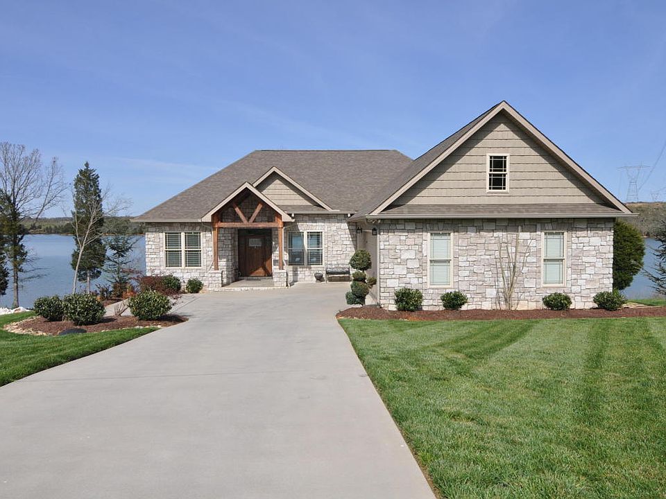 Panoramic Lake View! Hardwood floor throughout main level. Relatively level drive, Beautiful timber with tongue and groove front porch, double car garage, large kitchen pantry, custom distressed kitchen cabinets, granite countertops, hidden under cabinet accent lights, gas stove/oven, coffered ceiling in dining area, VIP bedroom with en suite bath, vaulted tongue and grove great room, large master suite with oversized walk-in shower, 2 stone fireplaces with gas logs, large high air volume wood ceiling fan, beautiful study overlooking Tellico Lake with (2nd fireplace), large covered porch with tongue and groove vaulted ceiling,tile in baths.....