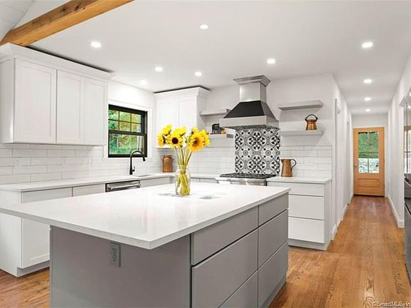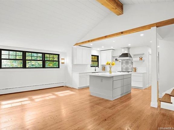 Located in the sought-after Pinewood Lake area, right in the center of historic Nichols. Convenient to schools, parks, highways, and restaurants. Completely renovated with high end quality materials. Mid-century, modern farmhouse feel with open floor plan, cathedral shiplap wood ceiling with antique white oak beam, gourmet kitchen with custom cabinetry, quartz countertops, tiled backsplashes, and Thermador Professional Series appliances. 1st floor guest bedroom and a home office which can also be a 5th bedroom. Main level laundry room off an oversized mudroom/entry foyer. Two full baths that are beautifully custom tiled. All new plumbing with Kohler fixtures throughout. New thermopane JELD-WEN windows throughout, new underground 200 amp service, all new electrical wiring, new efficient Lennox hydro air/heat and central air system, city water and sewer, refinished oak hardwood floors, Outside, high end board and batten siding specially treated Australian pine. Lifetime Timberline shingled roof, custom natural stone privacy walls and newly paved driveway. This home offers an oversized backyard that backs up to 330-acre Beach Memorial Park that has hiking trails. Deeded rights to Pinewood Lake Association with optional membership, which offers year round activities, with direct access to lake right across the street! The public records still show the original square footage of the home before renovation