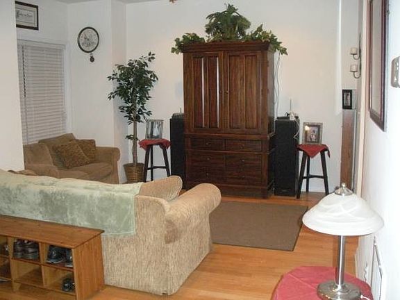 Two-story townhouse with hardwood floors, 9 foot ceilings, and Parking for up to 3 cars. (2 in driveway, 1 pass for common parking). Weekly trash collection included. Landscaping and snow removal included.