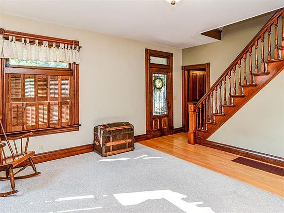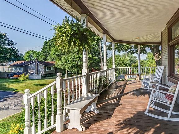 Welcome Home! Step up to the beautiful wrap-around porch and into the spacious living room with inviting gas fireplace. Warm dining room with hwd flooring, exposed brick, and access to wrap around porch and open concept kitchen. Large eat in kitchen has beautiful vaulted ceilings, updated cabinetry, and ample counter space. 1st floor also contains large den/family room w 1/2 bath, spacious rear mud room with main floor laundry and tons of storage. Head up the restored original staircase and you will find a full master bedroom w/ 2 large closets and master bathroom. Two other well sized bedrooms on the 2nd floor + hall bath with double vanity. The fully finished 3rd floor adds tremendous additional bedroom/living space + more storage. Outside you will find beautiful gardens and a nice yard with shed. The newly constructed 2.5 car garage with full 2nd floor walk up storage and additional rear storage/flex space is a huge bonus with this home! Short walk into Historic Downtown Harmony!