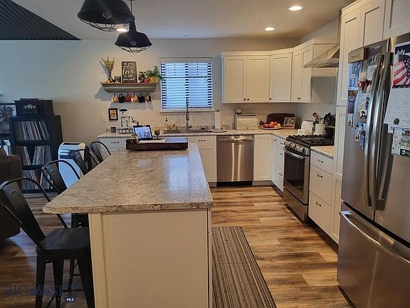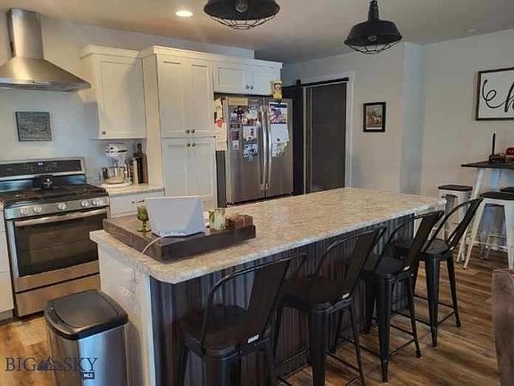 New pictures to be added shortly! Custom touches throughout this immaculate North 40 bungalow just minutes walking distance to downtown Ennis and the Madison River. A beautiful combination of modern and rustic charm! Open kitchen/living area, abundant windows for natural light. A spacious kitchen island separates living area and kitchen, perfect for entertaining, with a breakfast bar, seating area and built-in storage cabinets. Rustic engineered vinyl plank flooring throughout, corrugated gray metal ceiling in living area, propane wood stove, interior custom built barn doors to master bedroom and second bath. Spacious master bedroom, ath and large walk-in closet. Second multi-purpose room, currently a laundry room includes built-in twin size murphy wall beds from Black Timber Furniture, Bozeman. This room could easily be converted into a second bedroom Double pained windows throughout. Oversized single car attached garage. Landscaped yar, trees, shrubs, underground sprinkler system and partially wood picket fenced yard. Ennis is a quaint western town offering restaurants, galleries, shops, a hospital, library, schools 1-12 and private airport. Close to Big Sky Resort, during ski season private Jack Creek access with Madison Valley Ski Club membership. 70 miles to Yellowstone Park, 50 miles to Bozeman and the ozeman Yellowstone International Airport.