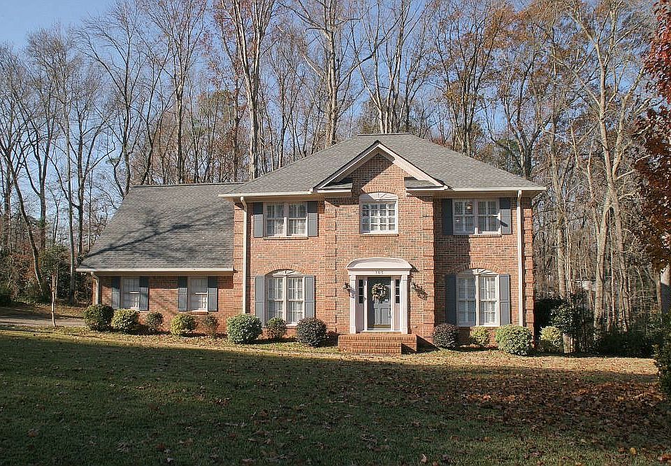 Attractive 2 story brick trad. on quiet street in popular Quail Hollow. Private BR suite w/full bath on ML. FROG is 5th BR (has closet, wall of storage closets & wall of bookshelves & Plantation shutters. All new carpet up. Lg. eat-in kitchen w/cabinets & counter space galore. Windowed breakfast area. Front & backstairs! GR opens to screened porch. Plantation shutters!
