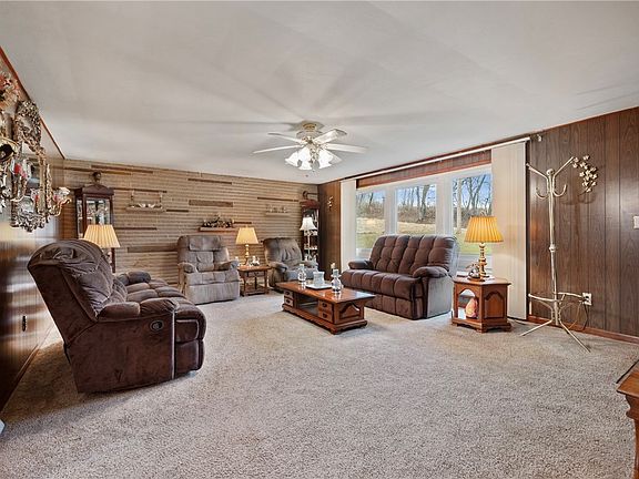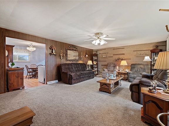 Welcome to 106 Painter Lane in Freeport SD! Stunning all-brick home w/3 bdrm, 2 bath, & finished lower level. Situated on a 1-acre, the property features a 2-car integral garage, detached garage that can accommodate up to 6 vehicles & a beautiful in-ground pool. Oversized 22x15 living rm boasts a striking stone wall & lg 3-panel window for amazing natural light. Dining rm is charming w/a gorgeous chandelier. C-shaped kitchen, crafted from solid wd, plenty of cabinetry that leads to a sunroom. Mstr bdrm incl 2 double-dr closets. 2 additional bdrms & updated bath w/a bathtub for relaxation on same fl. Finished lower level incl: a spacious 19x15 family rm w/a brick accent wall, wood-burning fireplace, & built-in storage seating. You'll also find a game rm (w/train), canning pantry, full bath, & a utility rm. Oversized 27x22 integral garage w/laundry area, while the detached 41x19 garage comes incl 220 line & a dressing rm. 36x18 fenced in in-ground pool, w/3' shallow end & 4' deep end.