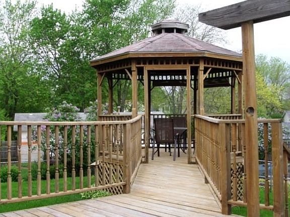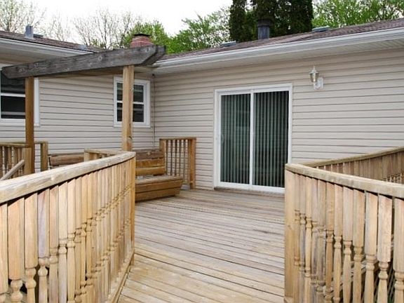 Move in ready! Living room includes fireplace with built-in cabinets & lighted knee wall shelving to rear. Eat-in kitchen area includes stove/refrigerator. Cozy 4 season room includes wood stove, & sliders which open to large deck area, gazebo & fenced yard. Finished basement includes full bath. Updates: Furnace/Air - 2012, replacement windows, bedroom ceiling fans - 2009, custom fireplace mantle/knee wall - 2008, remodeled bath-2011.