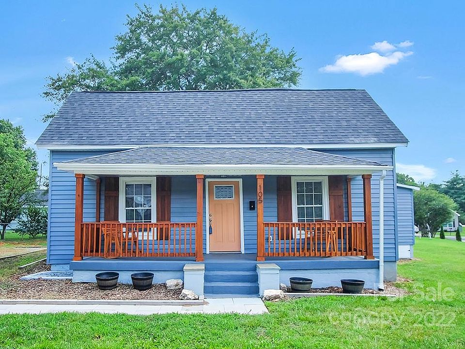 Come check out this newly renovated home in Clover and be greeted by a rocking chair front porch! Inside you'll find luxury vinyl plank flooring throughout. Living room features an electric fireplace centered on a shiplap accent wall. Kitchen includes granite counters, tile backsplash with industrial style open shelves, bright window overlooking the back yard, updated appliances including; stainless steel dishwasher and built in microwave over new glass top stove. Walk-in pantry is cleverly tucked behind a custom sliding barndoor. Full bath located off the living room has granite counters and tile step-in tub & shower. Powder room has been added off the hallway and is unpermitted. The large primary bedroom features another custom sliding barn door at the closet entrance.