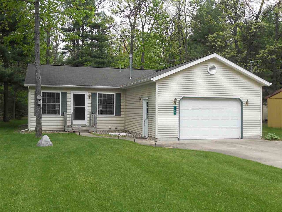 Great location! Walking distance to Higgins Lake. This 2 bedroom, 1 bath home has beautiful vaulted ceilings, central air, sprinkler system, large & open kitchen/dining room & maintenance free exterior. Sits on a large landscaped wooded lot. Concrete driveway, wired for an alarm system. Large concrete driveway big enough for RV parking- Also wired for 50 Amp service. Close to schools & Township Park.
