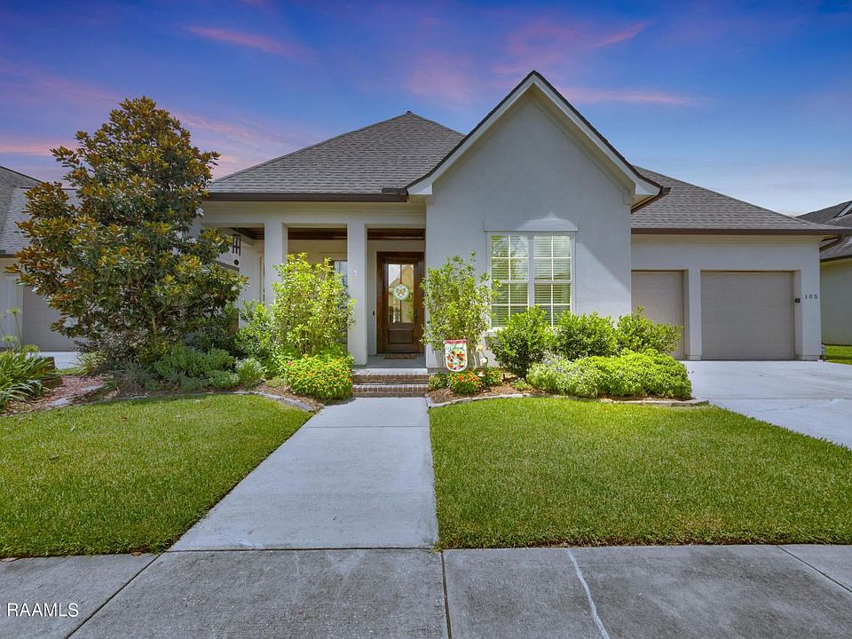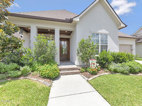 Everyone loves front porch sitting in Couret Farms! Adorable, quaint, and well maintained subdivision now has a very rare and fantastic floor plan hitting the market! How often do you find a THREE bedroom/THREE bathroom PLUS office, all on one level floor plan? Each bedroom has its own bathroom! This original owner home has a grand open floor plan, no carpet, and plenty of storage. Walking up to the home you notice the cozy shaded front patio perfect for rocking chairs and enjoying a cup of coffee. Entering into the home you enter into the foyer area with the true dining room on your left. Continuing into the home there is a spacious living room/kitchen area. Living room has a gas fireplace and plenty of natural light.Off of the living room is the kitchen area with a HUGE eat-in island with plenty of countertop for prep space. The cabinets wrap around this kitchen for plenty of storage. On one side of the home is the primary bedroom suite, office and a secondary bedroom while the third bedroom is closer to the front of the home. Primary bedroom is spacious enough for large pieces of furniture and has a ton of natural light. Primary bathroom has a spa like feel with dual vanities, separate shower/tub and a spacious walk-in closet. The office is near the primary bedroom and closes off for privacy. The secondary bedroom on this side of the house is spacious, features a walk in closet and has an en-suite bathroom. The third bedroom that is near the front of the home is a decent size and has its own bathroom in the hallway. The laundry room has storage and a sink area. Backyard is fenced with mature landscaping, room for a garden and a great patio to enjoy your afternoons. Sellers have added gutters and a sprinkler system. Couret Farms has it all when it comes to locationminutes to I49, minutes to I10, and only 20 minutes to Costco/Target!