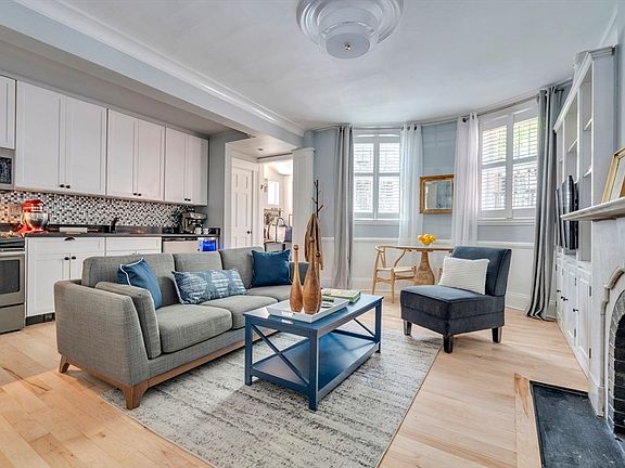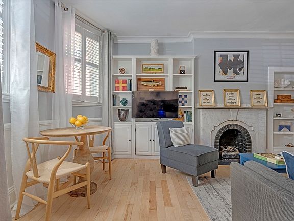 Offer deadline TUESDAY (5/21) at NOON. Enter through the street-level private entrance and be greeted by a cozy mudroom & adjacent coat closet. The inviting living room boasts large windows w/ white plantation shutters, marble mantle and fireplace w/ built-in storage on either side. Renovated kitchen w/granite counters, crisp white cabinets, ample storage, and convenient wine fridge. The pristine bathroom features wainscoting & modern fixtures, while the spacious bedroom overlooks a beautifully landscaped private patio space w/ water & electricity, perfect for enjoying al fresco dining. Hardwood floors throughout add timeless elegance, and the easily accessible washer/dryer on the same level provides added convenience. Additional storage w/shelving in the basement ensures ample space for belongings. This classic beauty is the perfect city home for the busy professional, offering proximity to Restaurant Row, public transportation, and amenities.