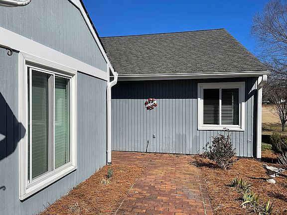 Located on the 5th green and 6th tee on Bermuda Run Golf Course. This home is a one level townhouse with solid wood stairs to a bonus room - used for office. Upstairs has over 500 sqft of walk-in storage space. It has a closed-in 2 car garage with extra storage. The beautiful view is off the brick patio onto the golf course and lakes with fountain. The kitchen has been updated with granite counter tops and full matching back splash- huge bar with GE Monogram 48 bottle wine cooler and a GE trash compactor, pull out cabinets, 2 lazy Susans, new stainless appliances in 2018. Marble look tiles throughout the home except bonus room - oak hardwood floors including in the storage areas with racks. New plantation style blinds and new windows with UV filter coating throughout with sliding glass doors with patio accsess from the living room and master bedroom. Lifetime warranty on all windows and sliding doors - transfers with ownership. Both bathrooms have been updated in 2019 with comfort level upgraded toilets and large glass enclosed shower. Tile floors replaced with bathrooms renovations. New ceiling fans throughout. New patio awning 2019, New gutters and down spouts, Bosh full size washer and dryer in the laundry area with overhead shelves and storage. 5 x 7 storage room outside off patio - fully enclosed. New french drain in front of garage 2021. New exterior light sensitive fixtures 2021. Ring doorbell. Wet-bar with tile counter top and mirrored adjustable glass shelves with sink and bottom 2 door storage cabinet. New gables and chimney in 2021. Water heater replaced in 2018 - Lifetime warranty.