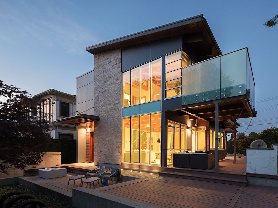 Discover a chic 2014 modern home on a corner lot in Vancouver's sought-after Cambie neighbourhood, facing Hillcrest Park with a high walk score, close to everything Main St and Cambie have to offer-transit, shops, and eateries. This stunning residence boasts 3 upstairs bedrooms, a vast rec room, and a flexible basement kitchen for a nanny, in-law, or guest. Enjoy a sunlit living room with floor-to-ceiling windows, a gourmet kitchen featuring high-end Wolf and Sub-Zero appliances, sleek marble-tiled floors, and exposed wooden beam ceilings, plus accordion windows creating an entertaining dream. The multi-level deck flows to a yard with a built-in playground for young children. Ideal for families or investors-move-in ready.