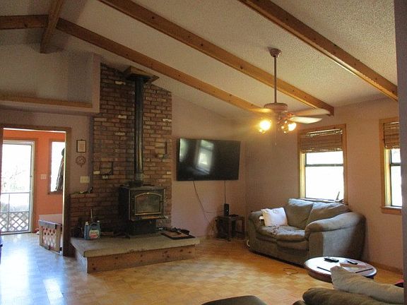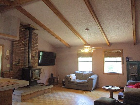 An attractive & cozy cottage, nestled among mature juniper, pinon, & pine trees with 3 bedrooms & 2 baths. Sits on an easy access, fairly level, corner parcel. Offers a detached shop, double carport, plus a shed that could also be additional car storage, or perhaps can be used as a barn with tack room. Horses are allowed. A comfortable home with vaulted ceilings in the open living, dining, kitchen area. Seller wants this Sold!!! and has put a very attractive price on it for an "as is" sale. . Metal roof, uncovered deck, Quadrafire wood stove, wood & carpet flooring. Fully fenced.