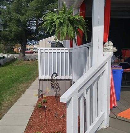 This 3 bedroom, 1 bath mobile home is situated near the end of a quiet, no-through road and is within walking/biking or a quick driving distance to everything you will need! Large covered deck with a satellite cable to enjoy watching the morning news or evening entertainment while enjoying the outdoors. The deck encloses in the winter time which allows your patio furniture to be sheltered from the snow. Inside you will find vaulted ceilings in the sun-filled living room and updated kitchen with under cabinet lighting. All kitchen appliances stay! Spacious bedrooms including the Primary bedroom which features a large walk-in closet and access to the covered deck. Other updates include; shed floor replaced (2018), forced-air electric furnace and central A/C (2010), windows/siding (2012), shingles (2010). Lot Fees are $527.36/month and includes road maintenance, garbage pick up, property tax, and water/sewer. Come enjoy this low-maintenance living in a great location!