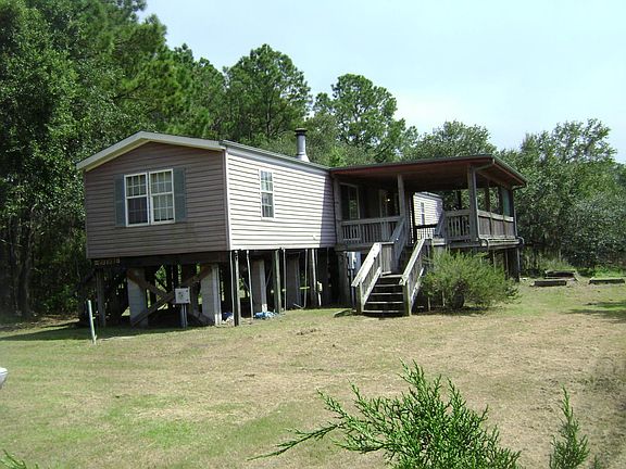 MOTIVATED SELLER! Owner financing will be considered with an agreed upon down payment. Nice elevated manufactured home nestled on over 6 acres overlooking Gorgeous views of the marsh and tidal creek. Extra large back porch, perfect for entertaining or enjoying the wildlife and beautiful sunrises and sunsets. This home is in good shape and has an open floor plan. The marsh area is ''Hard Pan'' owner says you can walk to the tidal creek at low tide. There is also a large work shop/ storage building on the property.