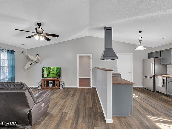 Welcome to this beautifully updated 3-bedroom, 2-bath home with a spacious bonus room in the desirable Cherrywoods Subdivision! Step inside to find LVP flooring throughout and stylish bathroom vanities. The kitchen is a true showstopper, featuring a ceiling-mounted hood over the stainless steel range, freshly painted dark gray cabinetry, and marble-like subway tile for a sleek, modern touch. The open-concept design seamlessly connects the kitchen, family room, and dining area, perfect for entertaining. Off the kitchen, you'll find a convenient laundry room with pantry storage. Down the hall, two guest bedrooms showcase a chic gray color palette, along with a full guest bathroom. The primary suite offers a private bath and walk-in closet. The large bonus room off the family room provides endless possibilities—use it as a fourth bedroom, home office, homeschool space, or media room. Outside, the fully fenced backyard ensures privacy, and the patio area is perfect for grilling and soaking up the sun. With so much potential, this home is ready for your personal touch—schedule your showing today!