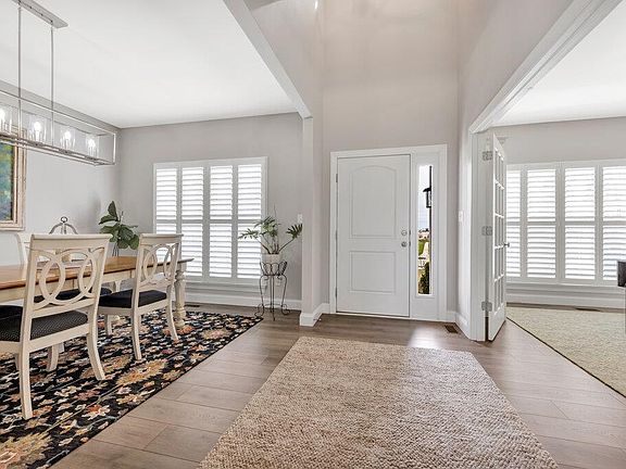 AMAZING 4-bed, 2.5 bath, former display home with 2800 sq feet of living space! This home is loaded with upgrades and is meticulously maintained. The heart of the home is a gourmet kitchen featuring a spacious square island, chic dark Flagstone cabinetry, gleaming white quartz countertops, stainless-steel appliances & butler's pantry. Enjoy meals in the bright breakfast room or relax in the expansive family room adorned with a bay window. Highlights include a formal living room/office with French doors, a separate dining room, & main floor laundry. The luxurious primary suite includes a spa-like bath with a double bowl vanity, separate shower, and corner tub. Three additional bedrooms and a hall bath complete the second floor. Step outside to discover an extra-large concrete patio (new 2024), professional landscaping & irrigation system. Located in a vibrant and highly sought after community with a playground, pavilion, & sports court- just a short distance to restaurants & shopping!
