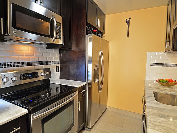 This beautifully renovated 2 bedroom condo has a newly updated kitchen and bath that truly raise the value of this unit. Being an end unit, it has more windows and takes in more light thru Southern and Eastern exposures. Enjoy the sunsets from your private balcony and when the sun has gone down recessed lighting makes your home as bright as can be. Bedrooms have double closets, the Master has two of them! You have laundry in the unit, an assigned parking spot and guest parking spots as well as a pool on site!