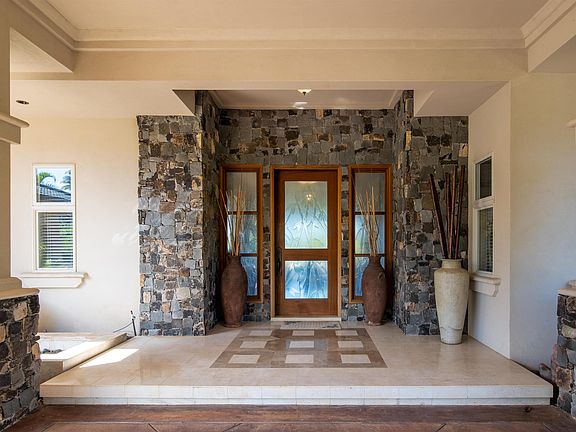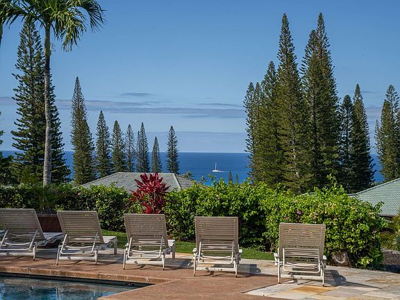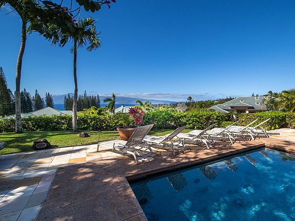 GREAT NEW PRICE ADJUSTMENT. Fabulous custom Single level home in Pineapple Hill Phase II. Ample off street parking and elegant porte cochere for convenience and guests.The views from the entry to the large open great room are magnificent. Molokai, Lanai, the Bay Course are captivating. The floor plan is spacious and elegant with a large master wing, with indoor/outdoor shower and office/smaller bedroom, at one end of the home. The master bath is quite large with separate vanities, tub and walk in shower. The walk in closet is a dream come true. At the opposite end of the home is a lovely junior suite indoor/outdoor shower, separate tub, and gorgeous views overlooking the pool and ocean. There is a 4th bedroom, full bathroom and separate laundry room. Lovely design and use of space. Crown molding, surround sound, and wonderful natural light. New security system. Marble floors throughout. The great room, formal entry, are beautiful showcase for your artwork. Many niches for displays. The large open kitchen has a gas stove, granite countertops, custom cabinetry with gorgeous backlit artwork. Kitchen has a new sub zero refrigerator, new dishwasher, and new wine refrigerator. Beautiful views from the kitchen which opens to the pool. The large living/family room has pocket doors opening to the covered lanai pool and spa, for that great indoor/outdoor living. The bar area is perfect for entertaining. Custom built ins. The water heater and A/C are brand new. Garage has room for the shop and custom built ins. LED lighting for efficiency. The pool area is great for entertaining .