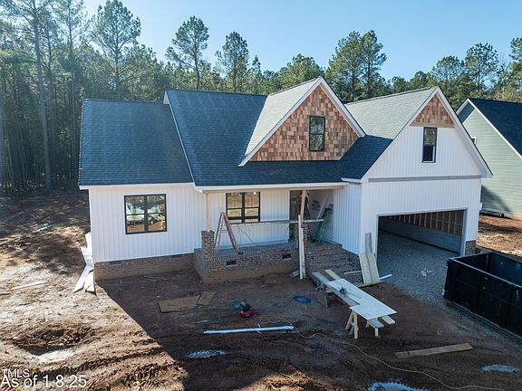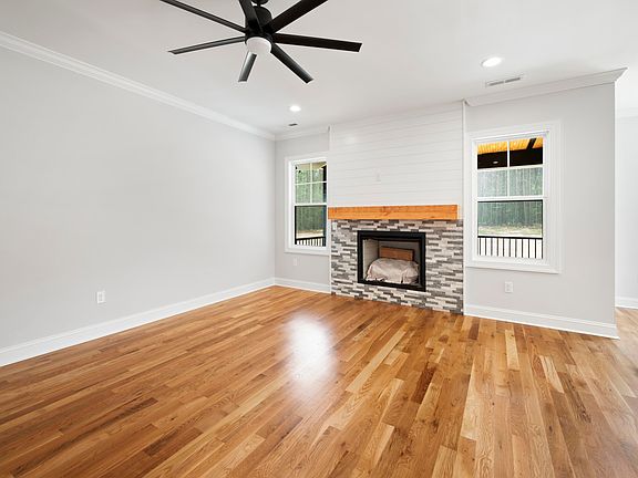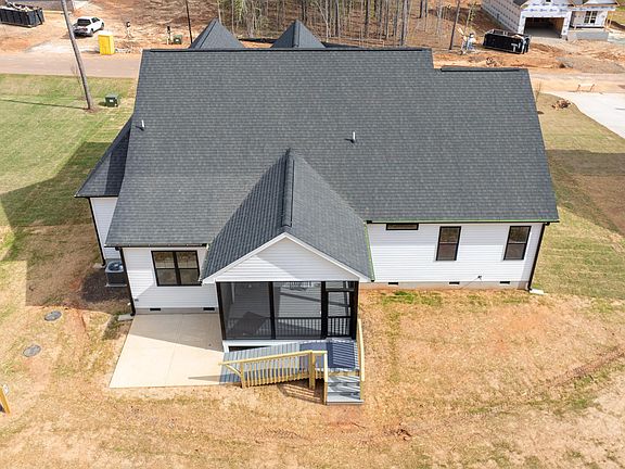 This 1.5-story Ranch offers comfortable living. The main floor has 3 spacious bedrooms including the Primary Suite and an open concept living area, bonus room/playroom upstairs for additional space. This home features A¾ site finished hardwood floors in common areas, Tier 1 tile in the master bathroom, and Level 1 quartz countertops throughout. The kitchen includes Tier 2 KCD 'Brooklyn' cabinets. Interior trim is 445 with crown molding in common areas and the master bedroom. The back porch is screened and composite decking. The exterior has Variform vinyl siding, brick on the front foundation, black Atrium windows, and black architectural shingles. All closets have wood shelving. Interior walls are painted with one coat of primer and two coats of