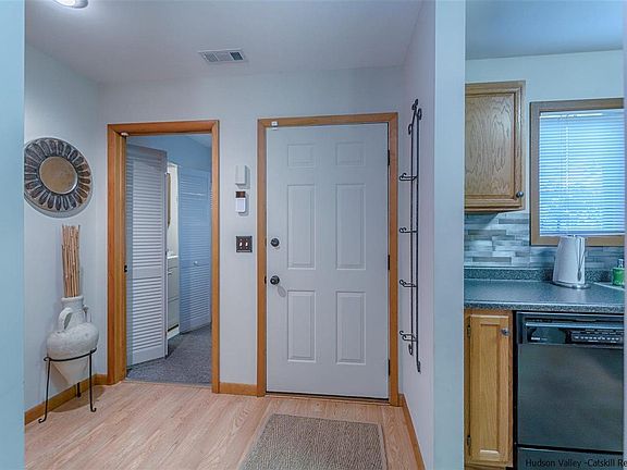 This 3 bedroom Fox Run Townhouse in Pristine Condition is located in a quiet beautifully maintained townhouse community that is centrally located and minutes to everything. Easy living at it's best! For starters this townhouse has great curb appeal with nicely accented landscaping, a seating area and a front door with a nice pop of color. Directly to the right as you enter is a half bath, laundry room and an attached garage. How convenient. And don't forget the central air! To the left is the kitchen with several updates including a new stainless gas range, a stainless hood, a new counter top and a gorgeous metal back splash. You also have a stainless fridge and ceramic tile flooring. The dining area is adjacent to the kitchen and is open to the living room with a wood burning fireplace for those cozy winter nights and a vaulted ceiling giving this room nice light all year round. There are glass sliders at the back opening onto a private deck with built in benches and plenty of room for entertaining. The second floor gives you 3 bedrooms which includes the master bedroom suite and a bedroom with a skylight. Each bedroom has great closet space too! This location is minutes to the Historic Uptown and Downtown Kingston areas and close to Saugerties, Woodstock and Rhinebeck. Approx. 90 minutes out of NYC