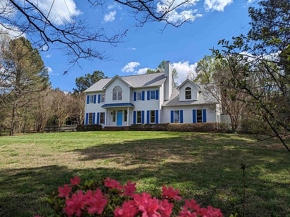 Spacious four-bedroom home on 2 acres minutes to Carrboro. The benefit of Chapel Hill Schools with lower county taxes. Large eat-in kitchen and a separate dining room. Walk out to a beautifully landscaped patio area that features an in-ground pool with a water feature and a fence for pets or kids. The expansive yard has cleared spaces to play areas and gardening. Lovely yard with tons of perennials and well-established bushes and trees. Fiber cement siding. Solar shingles. Hardwoods throughout the lower level. Large primary suite with double walk-in closets. 3 car garage. Versatile room above the garage for office, playroom, or home gym. Potential for added space with a walk-up attic already roughed-out for plumbing and electricity. 10 minutes to Weaver Street. 15 minutes to UNC campus.