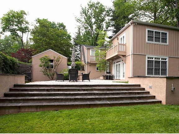 Come see this super attractive home in Villanova! This 3 Bedroom, 2.5 bath home has been expanded, updated and landscaped to offer a modern, comfortable interior and elegant outdoor space. The original cape cod style home was greatly expanded by previous owners to add a large open kitchen, breakfast/sun room, huge family room, and upstairs a Main bedroom suite and bathroom. Inside the attractive side entry you will see the sunny stone floored foyer and breakfast room. This room has glass doors on either end leading to the beautifully landscaped patios. And from this entry the walls are open to the family room and to the kitchen. The family room has hardwood floors, 2 walls of floor to ceiling windows/glass doors, and a marble tiled wall that reflects the warmth of a gas stove. The Kitchen was updated by the current owners with top of the line materials including soap stone counter tops. Toward the front are the original rooms which now serve as an elegant dining room with plantation shutters and brick fireplace and a spacious office with plenty of built-in shelves. The office is conveniently tucked away from the more active living areas of the home. Upstairs 2 spacious bedrooms share a hall bath. Both Bedrooms have ample storage in closets and one has cathedral ceilings, and glass door to a small balcony. The main bedroom suite begins with a wide sunny hallway. It includes an updated bathroom with glass enclosed shower, double sinks, and skylights, and a very spacious main bedroom. The main bedroom also has a door to a small balcony. This home also has a partially finished basement that could have a multitude of uses and still has plenty of storage space. There are dual high efficiency HVAC systems, both recently updated. Outside there is a detached 1 car garage, blue stone patios, a gravel terrace, stately landscape walls and a level open yard. The location is convenient to everything from town centers to parks, shopping, dining, schools, and well suited to commuting by train or car. Don't miss this opportunity!