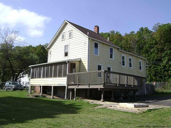 Turnkey two family/mother daughter with screened-in wrap around porch, big rear deck and, big open almost quarter acre lot, with fenced yard for the pets and or kids to enjoy. Main apartment has a big living room, a sweet galley kitchen, and a dining room with hardwood floors. Living room and upstairs have new carpets, and all rooms have fresh paint through out. Second apartment is bright, with lots of windows, all hardwood floors, and a old built in pantry with glass doors in kitchen. There is a just painted, two car barn style garage. House and garage both have some newer roofs. Nice big lot with fully fenced yard. Enjoy the rear deck or screened in wrap around porch. This is a quiet residential neighborhood, plus the Amtrack/Metro North train Stations are just across the River in Rhinebeck and Rhinecliff for commuters. Close by are Ryder and, Ulster Landing Parks, both on the Hudson River..... perfect places to launch Kayaks, boats or enjoy a picnic on the bank of the majestic Hudson River... This house is close to shopping, and all the beautiful Hudson Valley has to offer... Live in one apartment and rent the other.....