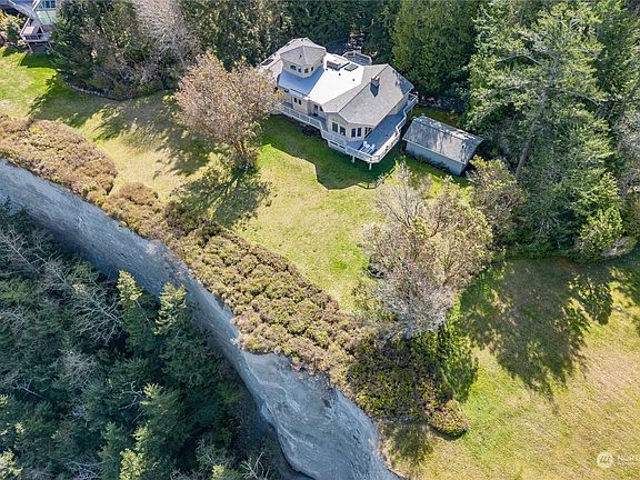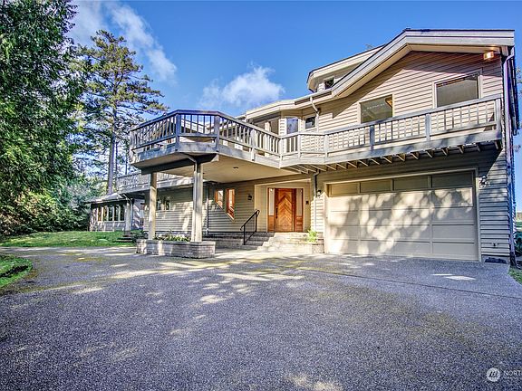 Captivating views of the Strait of Juan de Fuca and the islands beyond are showcased throughout this waterfront home located on 5 acres just minutes from downtown Port Townsend. A tree-lined driveway leads to the welcoming portico. The home's versatile design is an entertainer's delight, with spacious gathering spaces on both levels plus a wrap-around deck to watch the eagles soar or star gaze on a warm summer evening. Primary bedroom suite enjoys views and access to deck. Special features include a crow's nest and detached swim spa building. The oversized 2-car garage has room for projects, and gardeners will love the potting room. The possibilities will capture your imagination; the natural beauty and tranquility will capture your heart.