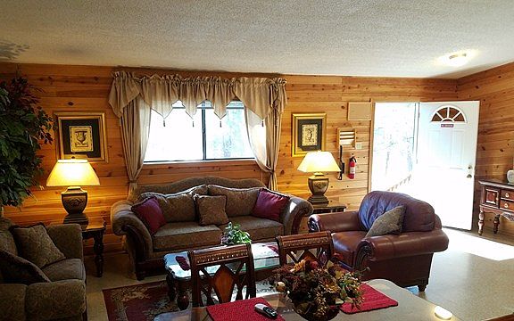 This home has 9 bedrooms, 4 bathrooms, 2 kitchens, two fireplaces, can be split up as two sides. Fully furnished King side featuring 3 king bedrooms and one with bunk beds, kitchen, fireplace , dining area, and living area. Fully Furnished Queen side with 5 queen bedrooms, two bathrooms, kitchen, fireplace, two dining areas and two living areas. This property is ready for a rental pool or a large family retreat. You must go into this home to fully appreciate.
