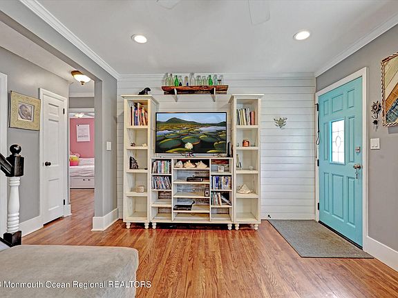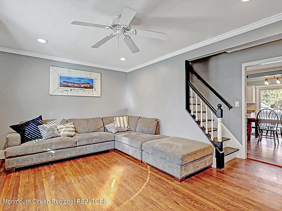 There's no place like home! Move right into this charming & updated 3 Bedroom Cape Cod style home with fenced in yard situated in the heart of Matawan. Catering to lifestyle & convenience, the main floor offers beautiful hardwood floors & a flexible floorplan with warm natural light. The Family Room features crown molding with a shiplap accent wall & opens to an updated Kitchen with crown moldings, stainless steel appliances, subway tile & granite countertops. A spacious eat-in area is accented with a beautiful wall of reclaimed wood & features sliding glass doors overlooking the private property. 2 additional bedrooms and a full bathroom are also located on this level. The Primary Bedroom Suite is located on the 2nd floor & features custom moldings & walk-in closet. A spacious partially finished Lower Level offers additional living space & ample storage. Attached garage leads to a breezeway with additional access to the generously sized backyard. All within close proximity to Highway 34/35/36, GSP, NJ Transit, NYC transportation, shopping/restaurants & beautiful Jersey Shore beaches. An amazing opportunity to make your dreams a reality!