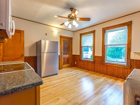 Beautiful, bright, and large 3 bedroom unit in a very desirable north end neighborhood. This 2nd floor unit has hardwood floors throughout, gorgeous natural woodwork, over 1700 square feet of living space. W/D hookups, 2 large porches (front and side), off street parking including one garage bay, and a large yard (on 3 city lots)...all on a quiet street. Credit check, income verification, and rental references required. No smoking, no pets.