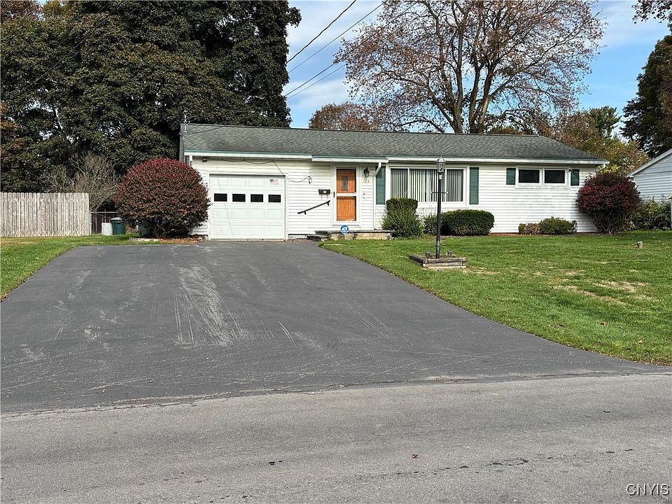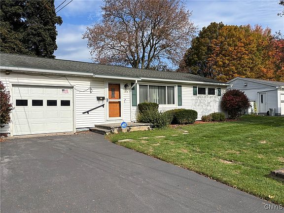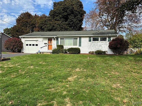 Welcome to this adorable ranch on Rebecca St! Just bring your personal touches to make this solid home your own! Great curb appeal in this well kept neighborhood in North Syracuse! Walking distance to Allen Road Elementary School and close to North Syracuse Jr High! Large living room with a big beautiful window and custom built cabinetry! Hardwoods under the carpet and tile at the entryway door. Three good size bedrooms. Full bath with a newer walk-in shower. Eat in kitchen with easy access to the one car garage. Newer garage door with opener. Spacious basement area with washer, dryer and a freezer. All appliances stay! Enjoy your fully fenced level yard and patio with a remote awning and storage shed. Easy to show and a pleasure to see! Be in your new home just in time for the holidays!