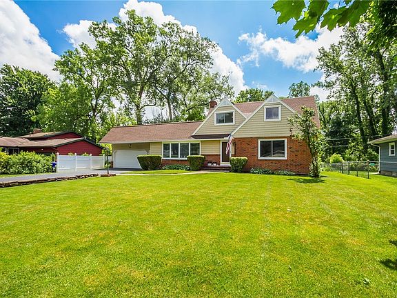 Welcome to this meticulous 3 bed, 2.5 bath home. Upon entry, you're greeted by a winding staircase, an extra-large closet, and tile flooring. The first floor features a spacious living room with wall-to-wall carpeting, a 14' bow window, and a stoned floor-to-ceiling gas fireplace. The eat-in kitchen, with all appliances, opens to a large Trex deck with vinyl rails. The four-season den, with slate flooring and a cozy gas stove, also accesses the deck. The 2.5-car garage, with updated epoxy flooring, offers ample storage. Upstairs, there are two bedrooms and a full bath. The partially finished basement includes a half bath and a built-in refrigerator, providing extra living space. Amenities include a private backyard, hardwood floors, vinyl siding, a 4-year-old furnace, a tankless water heater with a backup tank, generator hookup, a large first-floor bedroom, and a beautifully refinished first-floor bathroom with custom tile work. Additionally, a backyard shed offers extra storage. Don't miss out! Showings to start on 6/12 with negotiations set for 6/18 @3pm.