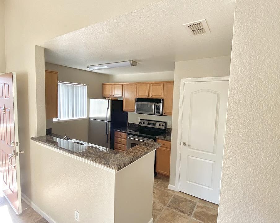 - KITCHEN FEATURES: 220 Volt Outlet, Dishwasher, Electric Range/Cooktop, Garbage Disposal, Microwave, Refrigerator, Counter - Stone