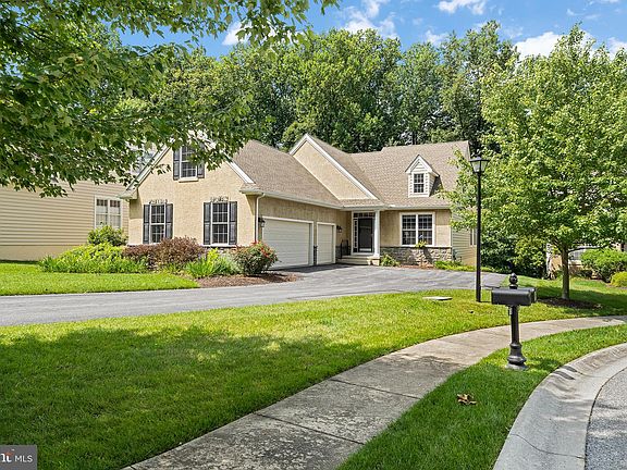 Welcome home to one of the largest homes in the sought-after Brittany Hills II community. With around 4,500 square feet of living space, this beautiful home sits nestled on a cul-de-sac street surrounded by natural borders. As you enter, you are greeted by gorgeous hardwood floors and professionally selected paint colors running throughout most of the main level. To your immediate right, you will find glass-fronted double doors inviting you into the well-positioned home office with views of the greenery across the way. Across from the office is the lovely laundry room with access to the 3 car-garage and a huge pantry for whatever your storage needs. As you move through the entry hall, you will emerge into the open kitchen and living room layout bathed in natural light from the wall of windows. The spacious kitchen is teeming with cabinets and features granite countertops, breakfast bar, stainless steel appliances, double oven, stylish backsplash and coffee bar. The living room boasts two ceiling fans and a cozy double-sided fireplace that separates the living room from the dining room, with access to the composite deck with stairs to the backyard. A hallway off the kitchen leads to the large primary bedroom with ceiling fan and a huge walk-in closet with custom inserts. The primary bathroom features dual sinks and a glass enclosed shower. The main level is completed by a second bedroom with ceiling fan and closet with custom inserts and second full bathroom with a walk-in tub/spa combo. Upstairs you will find a sitting room, the 3rd bedroom with two closets, and a full bathroom with a tub/shower combo. The above ground lower level is almost as equally spectacular with its own kitchen (minus a stove, but there is a gas line to add one back), living room with sliders to the back patio, two large bedrooms, one with a large walk-in closet, and two full bathrooms. There is also a second laundry room, two huge storage areas, and a Tuscany style wine cellar with room for a tasting table. This beautiful home also boasts a 4-year old roof, tons of storage space and low HOA dues! Please note, only one occupant needs to be 55+. Seller is offering a $10K credit to the buyer to be used for the carpeting/flooring of their choice.