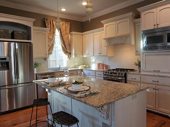 Staged and an absolutely beautiful cottage in gated Vintage Park Subdivision. This home features old pine flooring in the living/dining areas with warm neutral colors and crown molding. The plan is open and includes a beautiful kitchen with lots cabinets, granite counters and stainless appliances fridge and washer and dryer. The master bedroom also has pine flooring and beautiful bath with custom mosaic tiled shower, his and her sinks, a make up vanity and a whirlpool tub. The front two guest bedrooms have a shared bath featuring granite counter and marble flooring. A few other amenities include a double rear load garage, desk nook, drop area, built in speakers, landscaped and a quiet covered patio. Lastly, don't forget to visit beautiful subdivision park and pond with walking a trail.
