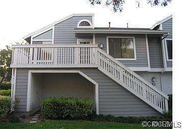 Top level Carriage unit with no one above or below. Top level with vaulted ceilings for airy view of tree tops from high catherdral windows. Bay window in the Dining room with Mirrored wall. Corner windows in the Living room. Kitchen at the corner of the Great room. Awesome. Pergo wood floors throughout. Kitchen sink overlooking breakfast bar to living room opens to dining room. VERY open floorplan. Seems to add volumes of spaciousness. This was a model home when builder was selling new. Close enough to pool to make it warm when you use Jacuzzi but not too close. Top entry balcony is large too. Hallway closet holds washer and dryer included. One bath across from 2nd bedroom has builder modifications for use as home office or study center or playroom. Master Bedroom also has mirrored wall and walk-in closet. Separate vanity next to tub bath. Tubs in both baths. Gorgeous SHUTTERS IN ALL THE ROOMS... add elegance and light or heat control in all the rooms... Garage is 1 car under the unit #325 of a shared garage. Storage closet under the stairwell belongs to the unit. One of a kind place. Small Pets ok with Deposit