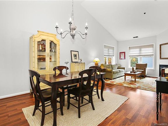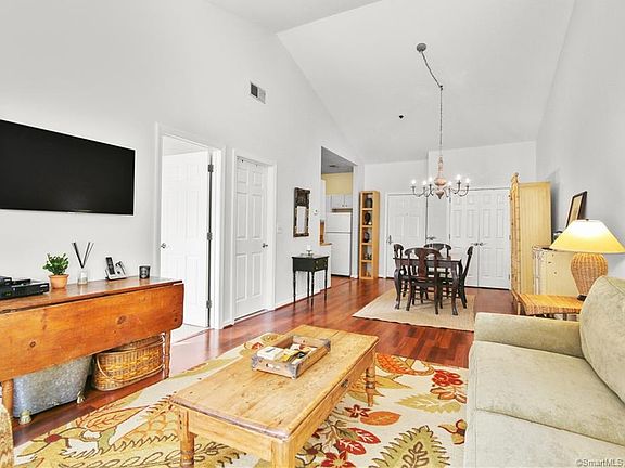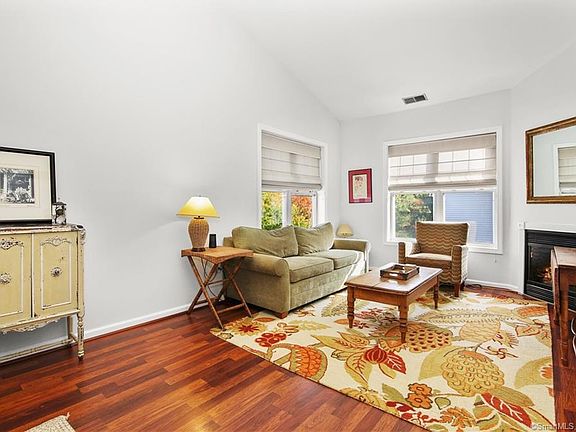 Darien/New Caanan border! Coveted top floor corner unit with soaring vaulted ceilings in modern, secured elevator building with gated reserved garage parking. Light-filled, open-concept back-to-front dining room/living room with fireplace as the focal point provides a truly airy and peaceful place to call home. Well-sized modern kitchen with granite countertops and stylish tiled backsplash affords easy navigation for occasions where there may be more than one cook in the kitchen. Spacious bedroom with walk-in closet and ceiling fan is immersed in natural light from an extra-large double window accented with arched top lite. Gas heating and cooking, central air, in-unit washer and dryer, private storage, guest parking and a pet-friendly building make it complete! Outside, enjoy park-like grounds with plenty of greenspace and bench seating, too, yet just steps from shops, restaurants, fitness, entertainment and conveniences. Unbeatable location nestled between Starbucks and Trader Joes, just moments from Dariens Retail Corridor and South Norwalks entertainment district, less than 1 mile to I-95 and less than 2 miles to Darien or Rowayton train. Everything you would possibly want or need is less than a 1/2 mile to 3 mile radius. Come home to comfortable and easy living today!