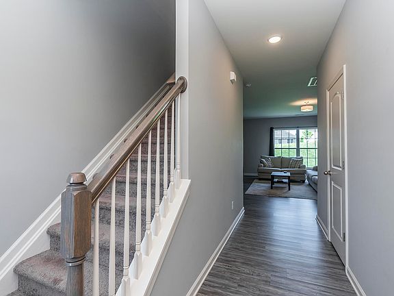Having only one owner since completion in 2021, this Bedford Hill floor plan still has that fresh, new feel to it. After entering from your covered front porch, you are welcomed to the main level that offers an open concept with living room, kitchen (stainless appliances, granite countertops, island with seating) and dining area. Second level offers primary bedroom with en suite bathroom and walk-in closet, Two additional Bedrooms, Flex Room waiting your plans, Full Bathroom, and Laundry closet. Property Features: Vinyl Flooring on main level, bathrooms, and laundry closet; Carpet in bedrooms and flex room, walk-in kitchen pantry, concrete rear patio, and only one owner/occupant.