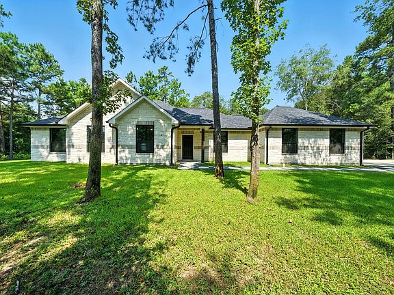 Motivated Sellers, Welcome to 105 Rim Rock Road — a peaceful, wooded escape in Huntsville offering the perfect blend of comfort and beauty. This stunning single-story home features a bright and airy layout with spacious living and dining areas designed for effortless entertaining. The expansive kitchen opens gracefully to the living room, creating a seamless flow throughout. The private primary suite exudes serenity with views of nature and a spacious en-suite bath. Generously sized secondary bedrooms, a cozy flex space, and a large laundry area make everyday living easy. Thoughtful lighting, elegant ceiling details, and an abundance of windows fill the home with warmth and charm. Step outside to a large backyard surrounded by tall trees — ideal for relaxing, playing, or simply enjoying nature. Just minutes from I-45, this home offers privacy and convenience in one beautiful package. **This property also has a lot next to door listed as well MLS# 32370866**