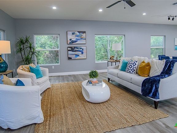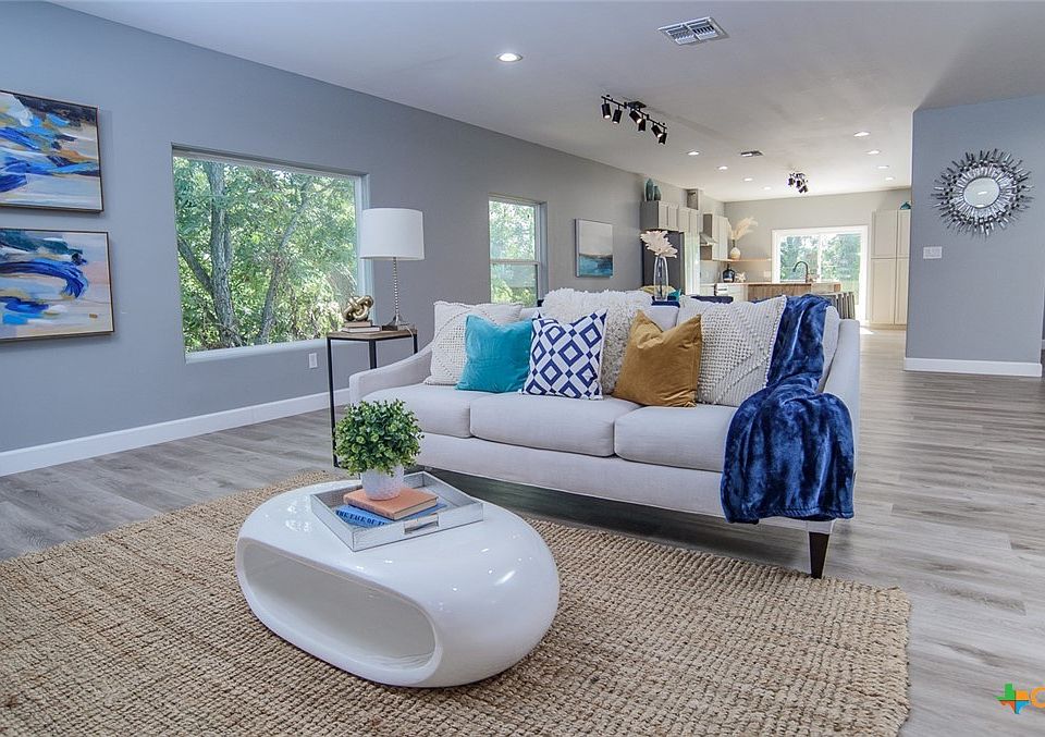 This home welcomes you with a wraparound deck perfect for outdoor entertaining and a beautiful view of the greenbelt! The home host an open floor plan with family room, dining and kitchen are open and flow together. Modern details with a soothing grey palette throughout the home. No HOA so short-term rentals are allowed! Located close to the Guadalupe River, this home is waiting for you!